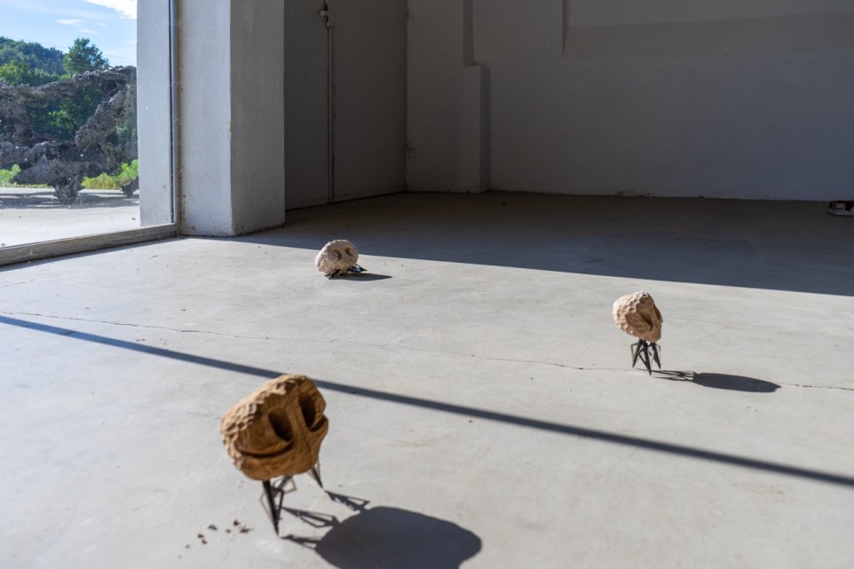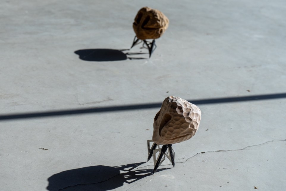 Mit Hunden beschäftigt sich auch Gianna Virginia Prein, wenn sie Hundeschnauzen aus Holz schnitzt und anschließend auf Pfeilspitzen als Skulpturen installiert. Ihre Serie Snooper geht Polizeischnüffelhunden nach, die mittlerweile nicht nur Drogen und Schmuggelware, sondern auch elektronische Devices wie USB-Sticks, Hard Drives und Phones erriechen sollen.